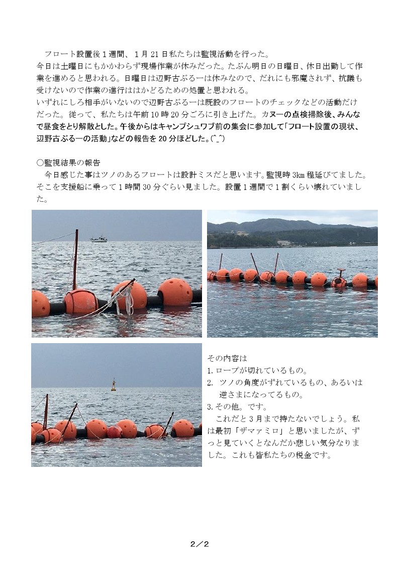 たんぽぽ舎特派員 辺野古 2017年2月3日